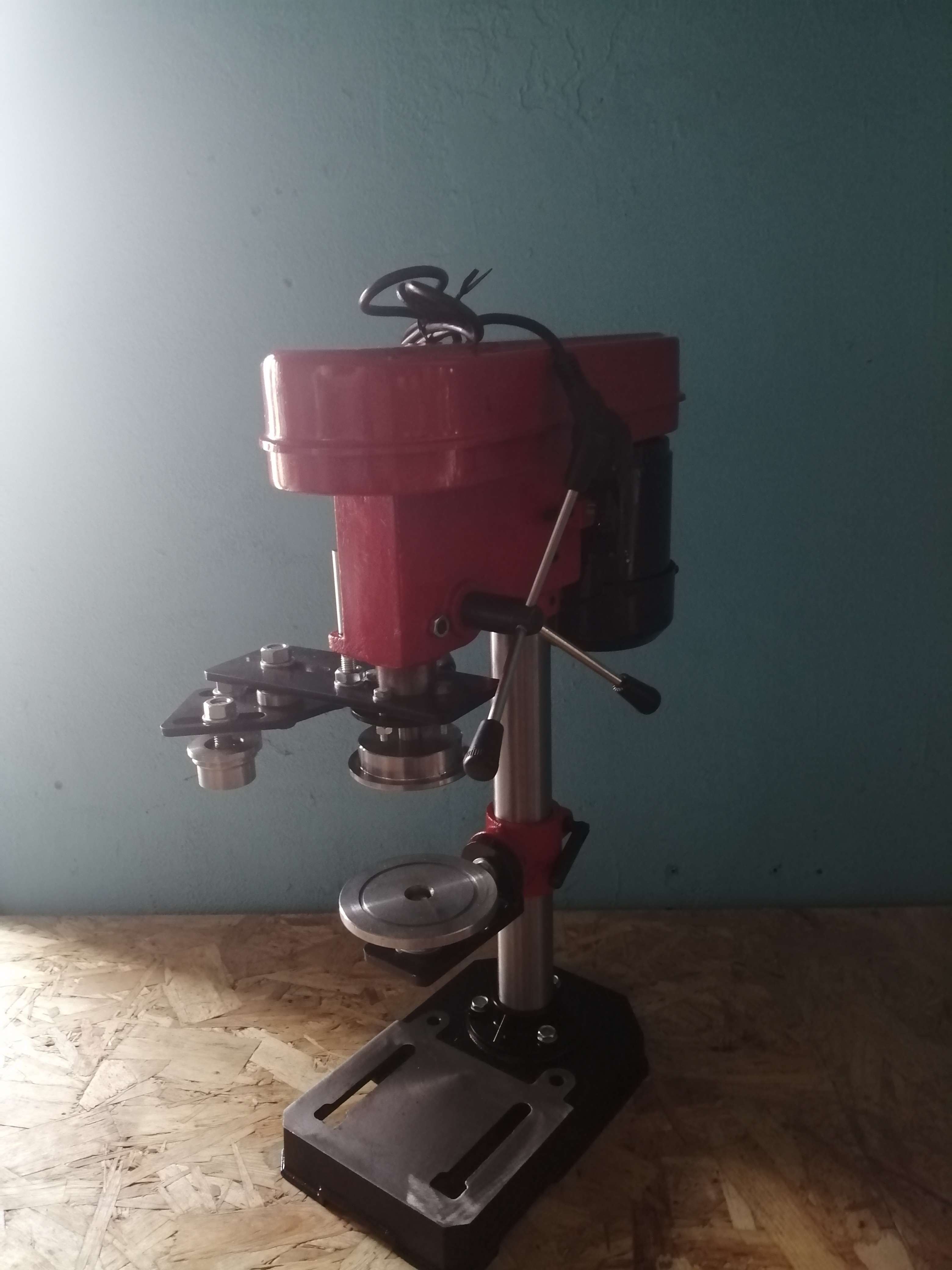 Оснащена электродвигателем, Производительность 400+ банок в час (при готовности продукта), Закатывает банку за Один проход. Ролики выполнены на профессиональном токарном станке с ЧПУ, вес порядка 15 кг, Габариты - Высота 60см Длина 45см Ширина 30см, Простая, Удобная, Несложная в эксплуатации, отлично подходит для охотничьих, рыболовных, фермерских хозяйств. По запросу выполняется под любую необходимую жестяную банку. Механизм под нужную банку меняется и настраивается вручную.